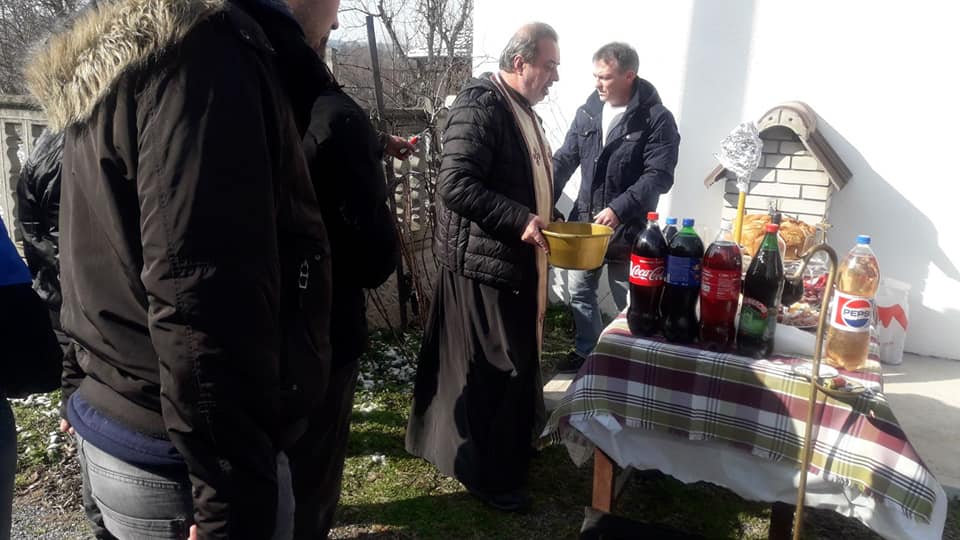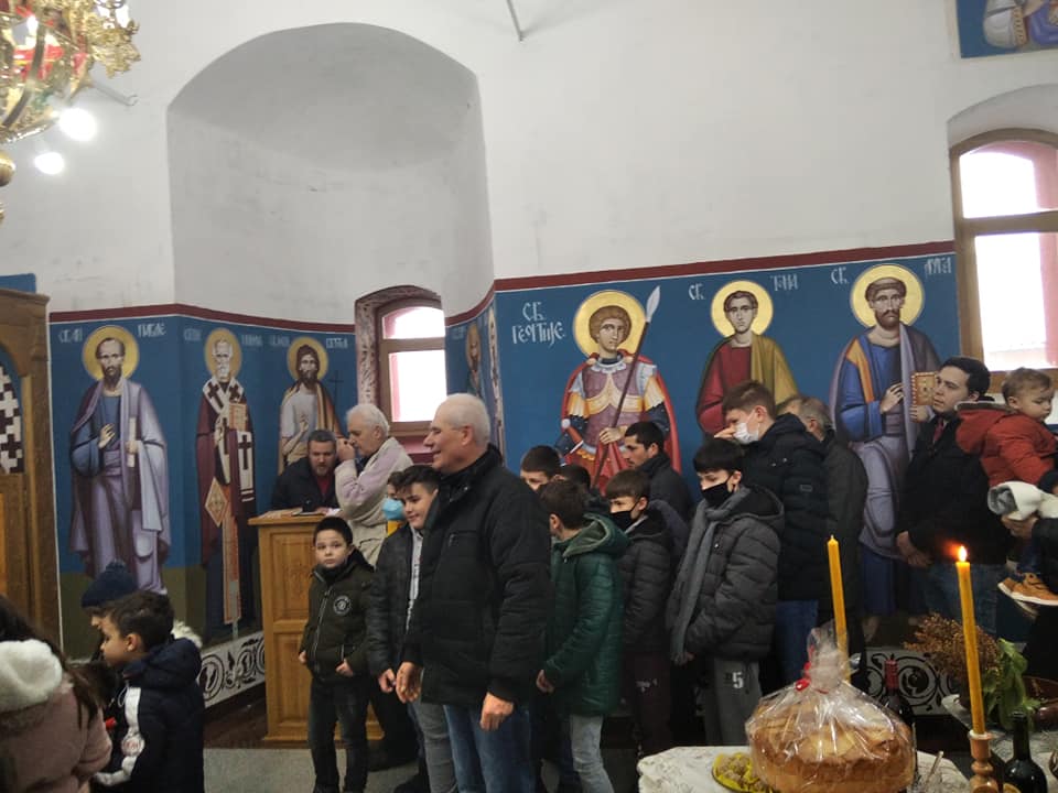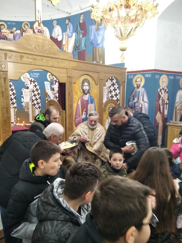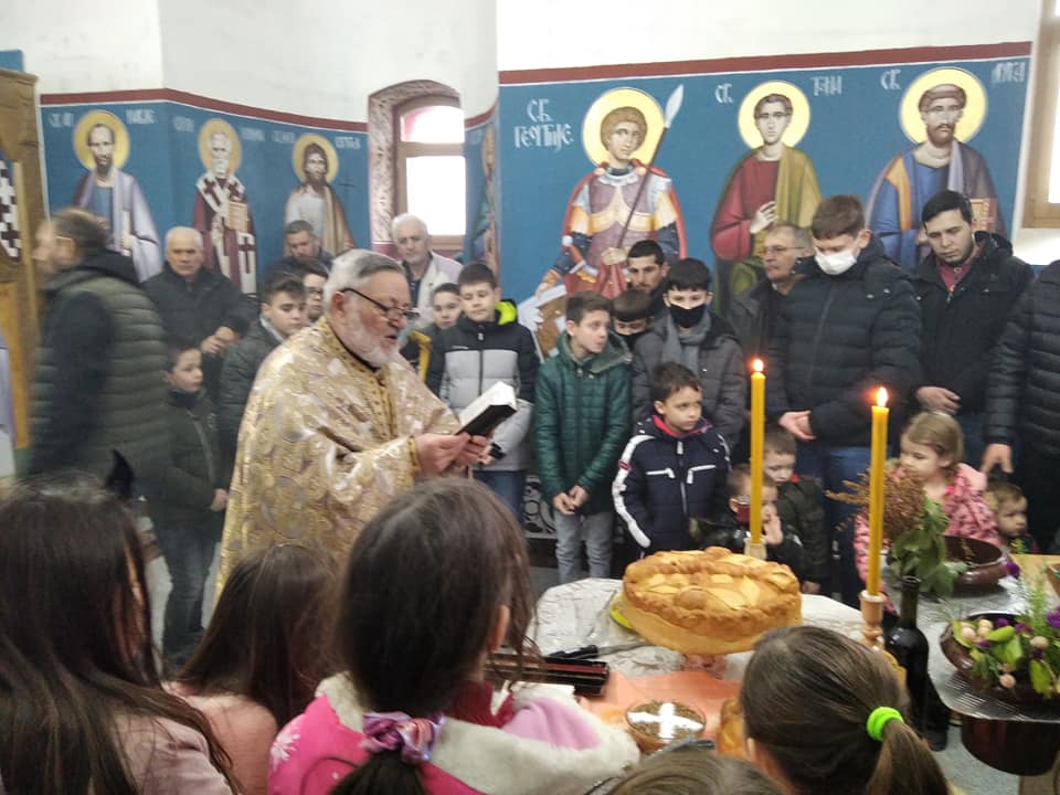 Uz prisistvo mnogobrojnih vernika kao i decice iz Osnovne Skole Sveta Mihajlovic iz Tabanovca odrzana je sveta liturgija i rezanje slavskog kolaca.